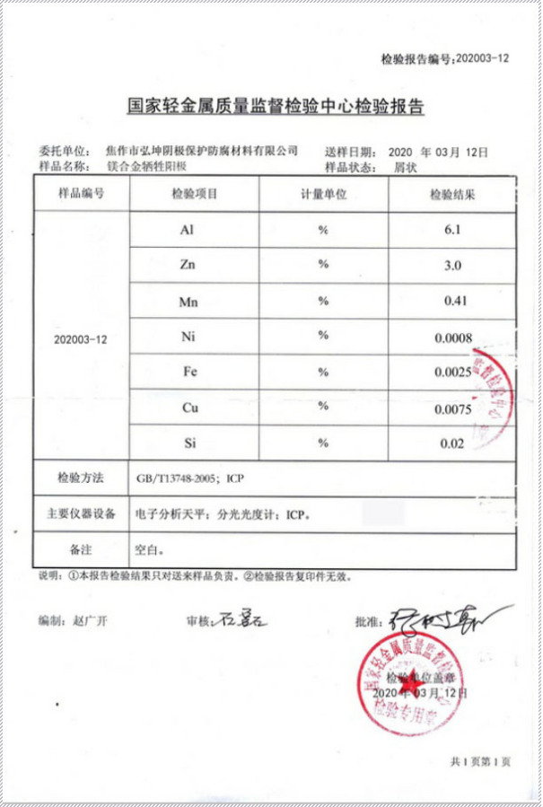 鎂合金犧牲陽極檢驗(yàn)報告II