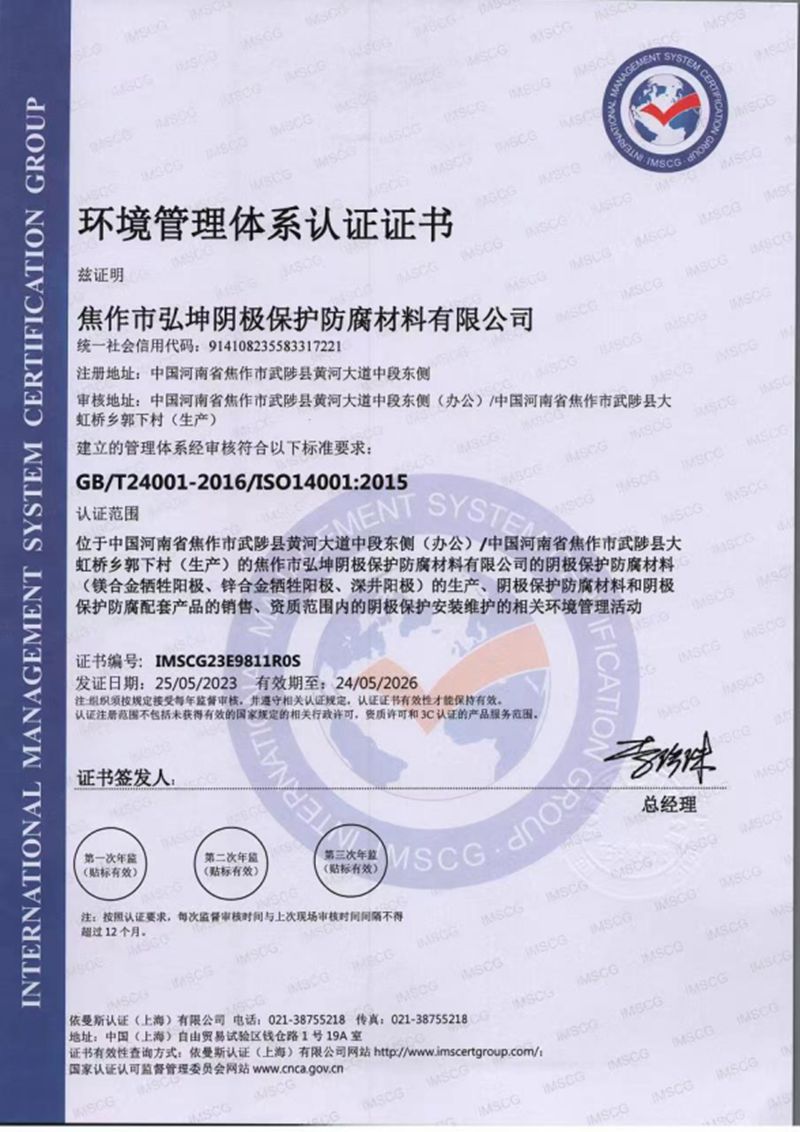 環(huán)境管理體系認證證書