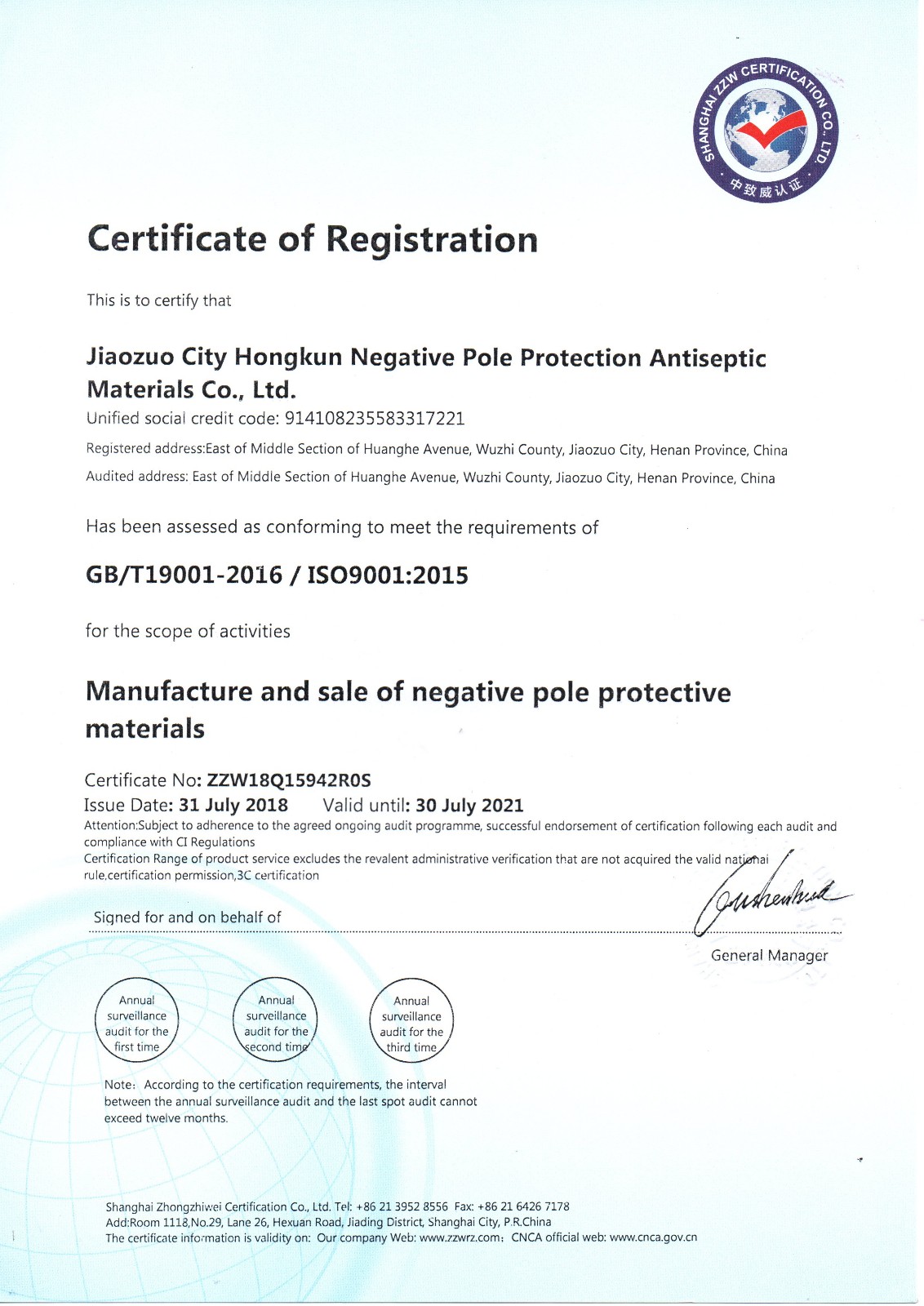 我公司位于中原地區(qū)的河南省焦作市,是*從事陰極保護材料生產(chǎn)、銷售、方案設計、工程施工、技術咨詢?yōu)橐惑w的新型企業(yè)。公司內強管理,規(guī)范運作,獲得了“防腐行業(yè)具影響力品牌”等榮譽。